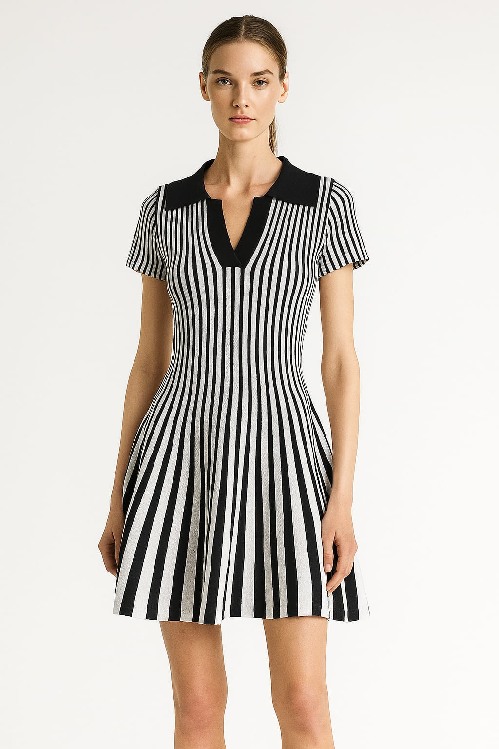 Striped Pleated Mini Dress – Fit and Flare Casual Party Style