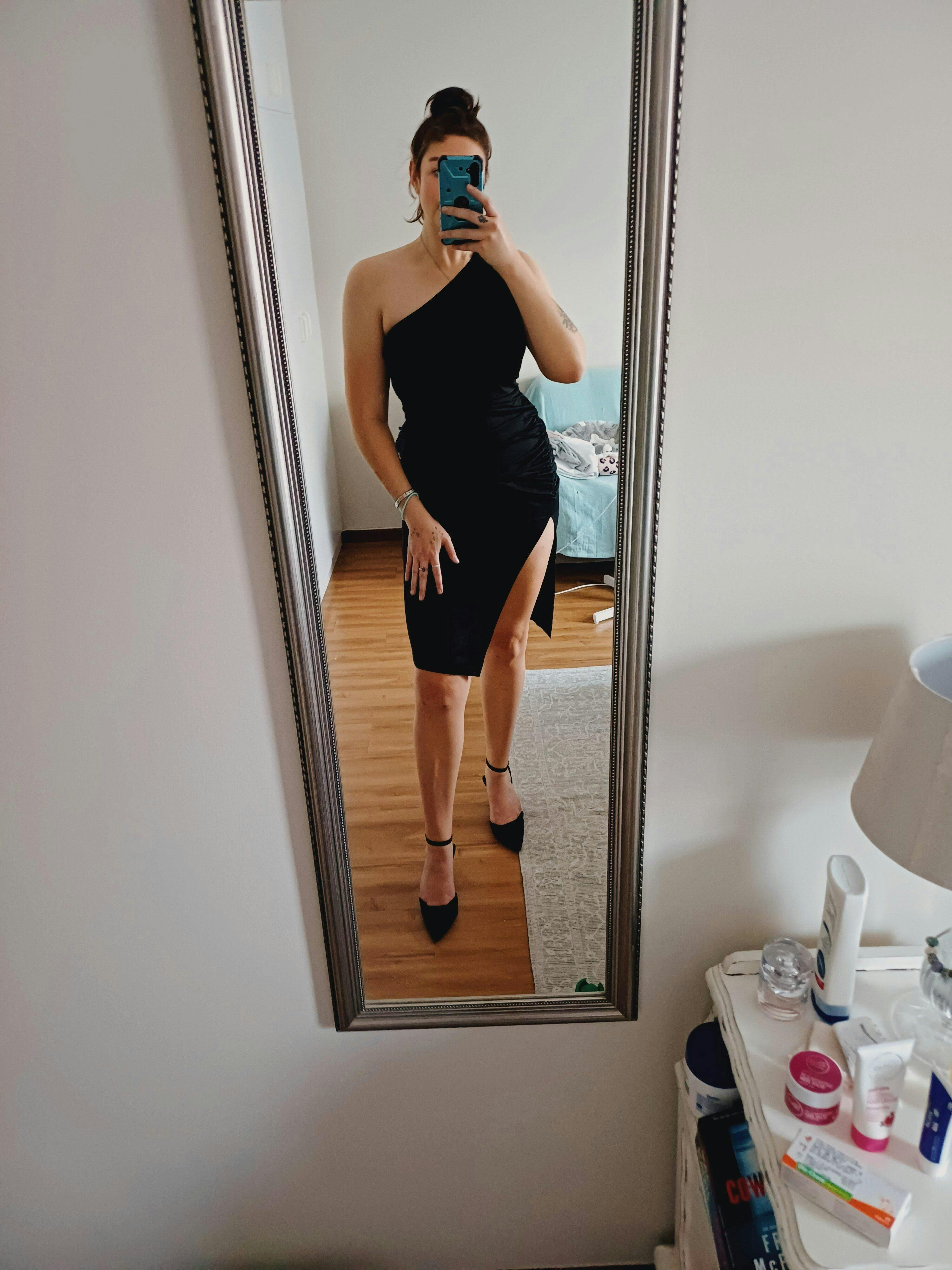 Thank you for taking the time to leave a review for our one shoulder high waist ruched split midi dress. We are glad to hear that you found the dress to be lovely and of good quality. We apologize for any inconvenience with the sizing and will definitely take your feedback into consideration for future improvements. If you would like to exchange the item for a smaller size, please contact our customer support team. They will be happy to assist you. Thank you again for your review and we hope you continue to shop with us.