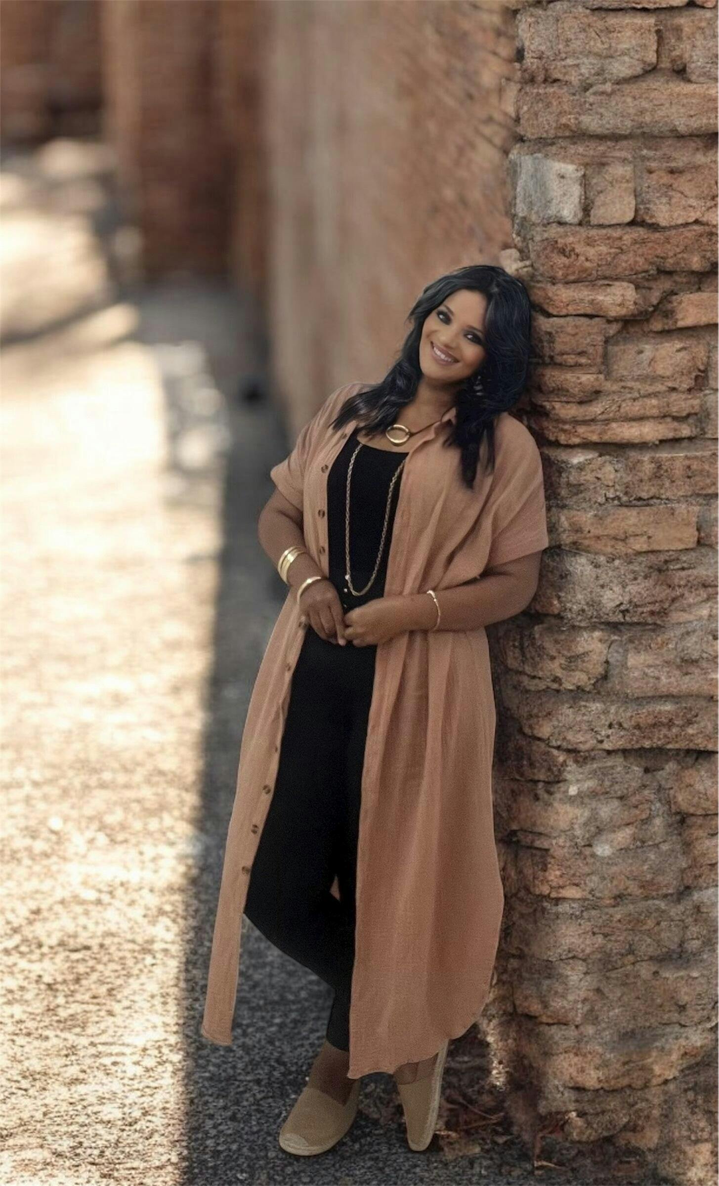 Portia M. (Pretoria, ZA) Rolled-Up Short Sleeve Maxi Button Up Shirt Dress